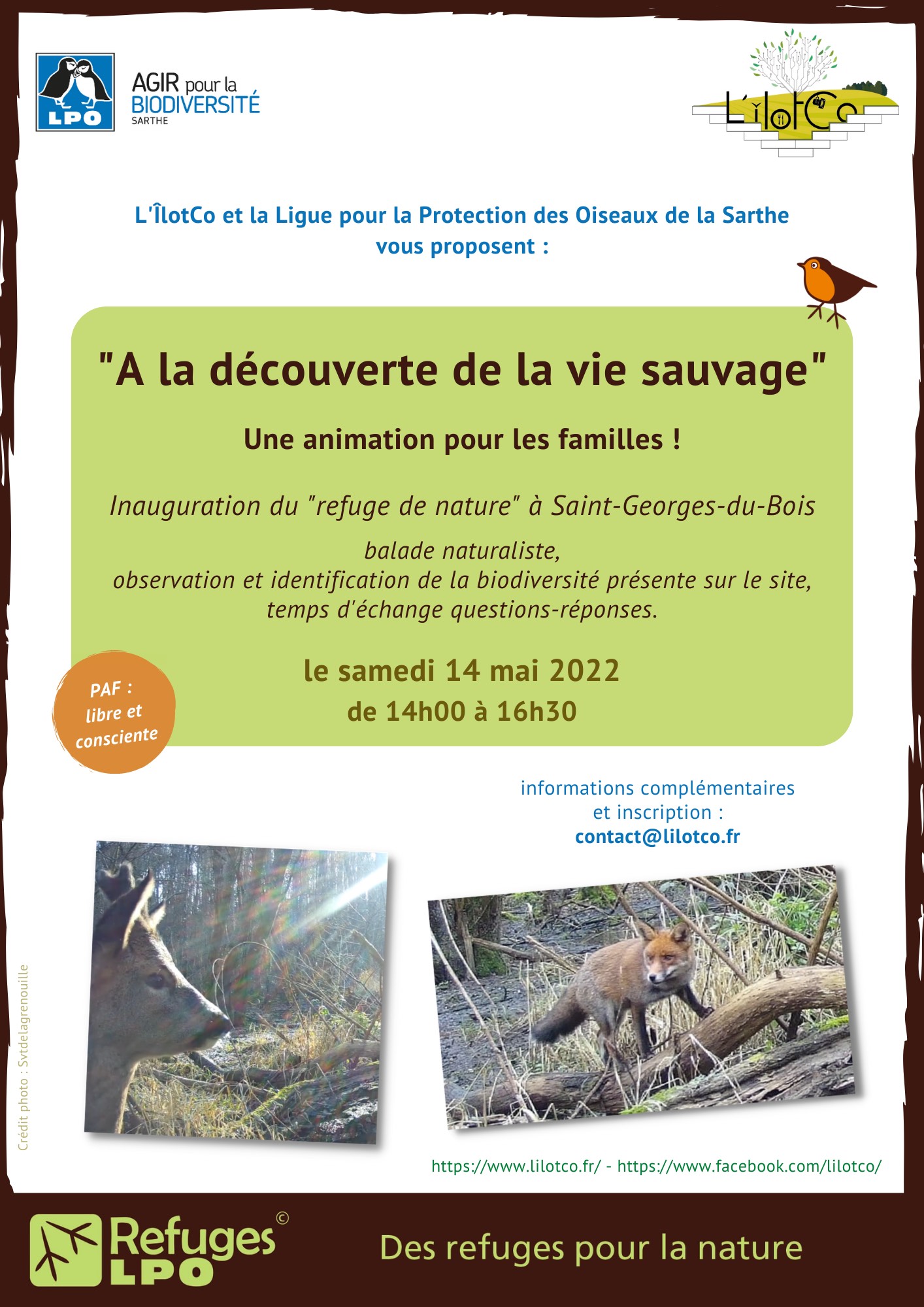 Tarif : Participation Libre et Consciente, qui aidera L’îlotCo à financer cette intervention de la LPO Sarthe.