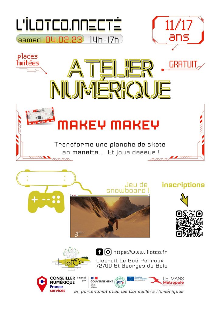 Une après-midi autour du jeu vidéo. ⚙️ Tu transformeras une planche de skate 🛹 en manette, pour jouer à un jeu de snowboard 🏂, en montant sur le skate ! Nous en profiterons pour prévoir de futurs ateliers selon tes envies.