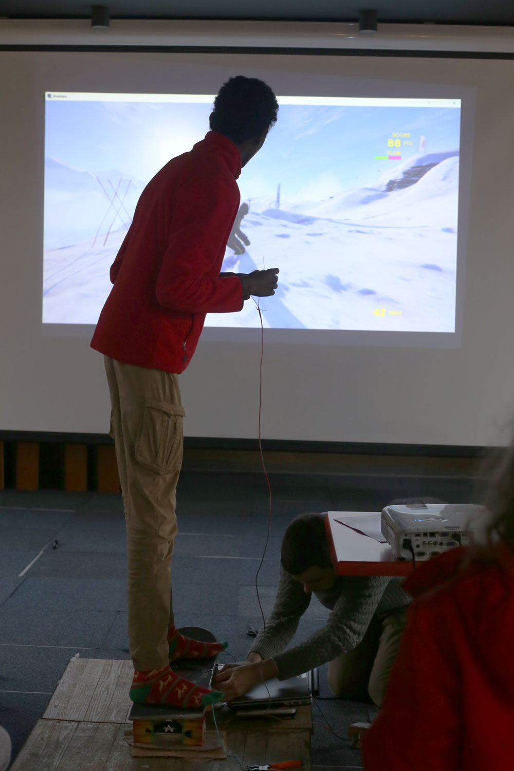 Récompense de cet atelier ludique : Expérimenter le jeu de snowboard à partir de la planche de skateboard !