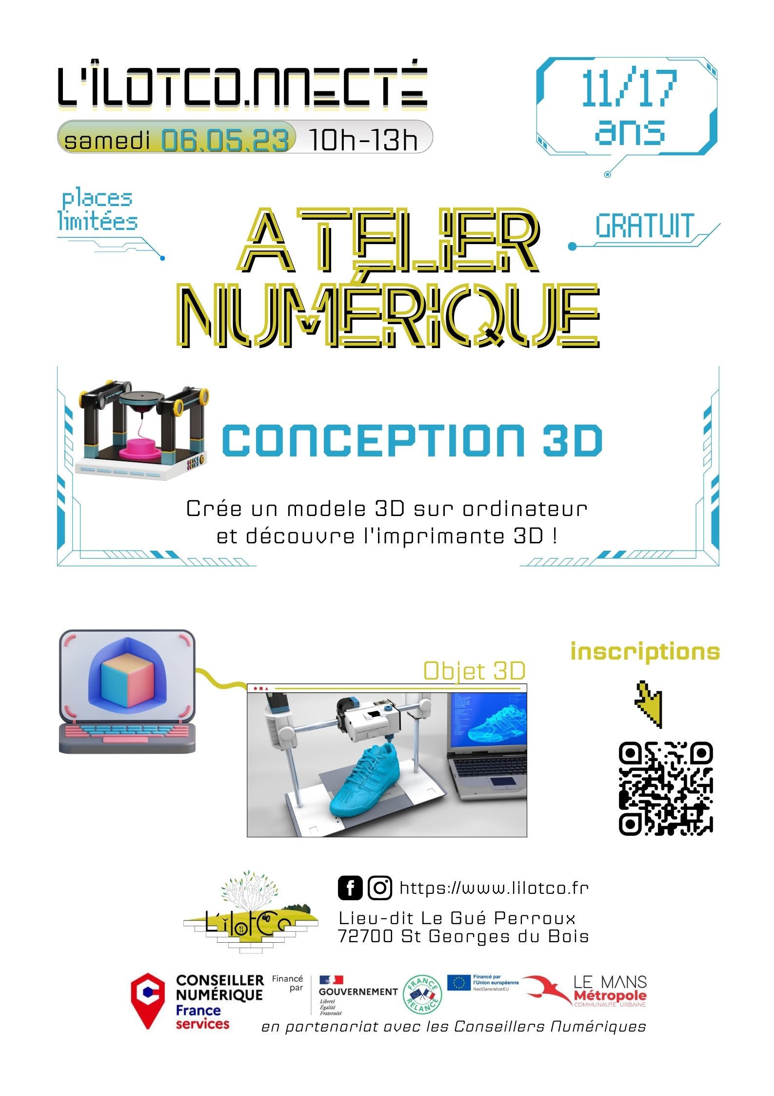 Le dernier RDV L’îlotCo.nnecté avait lieu samedi 6 mai à L’îlotCo, avec un nouvel atelier gratuit pour les 11-17 ans, qui a permis à 11 jeunes de découvrir la conception et la modélisation 3D !