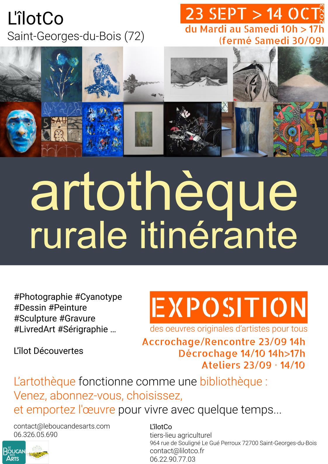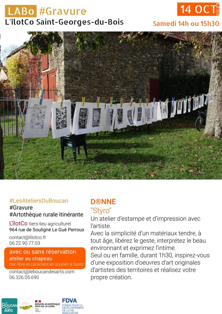 L’atelier sera suivi du décrochage de l’exposition de l’Artothèque Rurale Itinérante du Boucan des Arts, installée depuis le 23/09, à visiter sur tout moment d’ouverture de L’îlotCo !