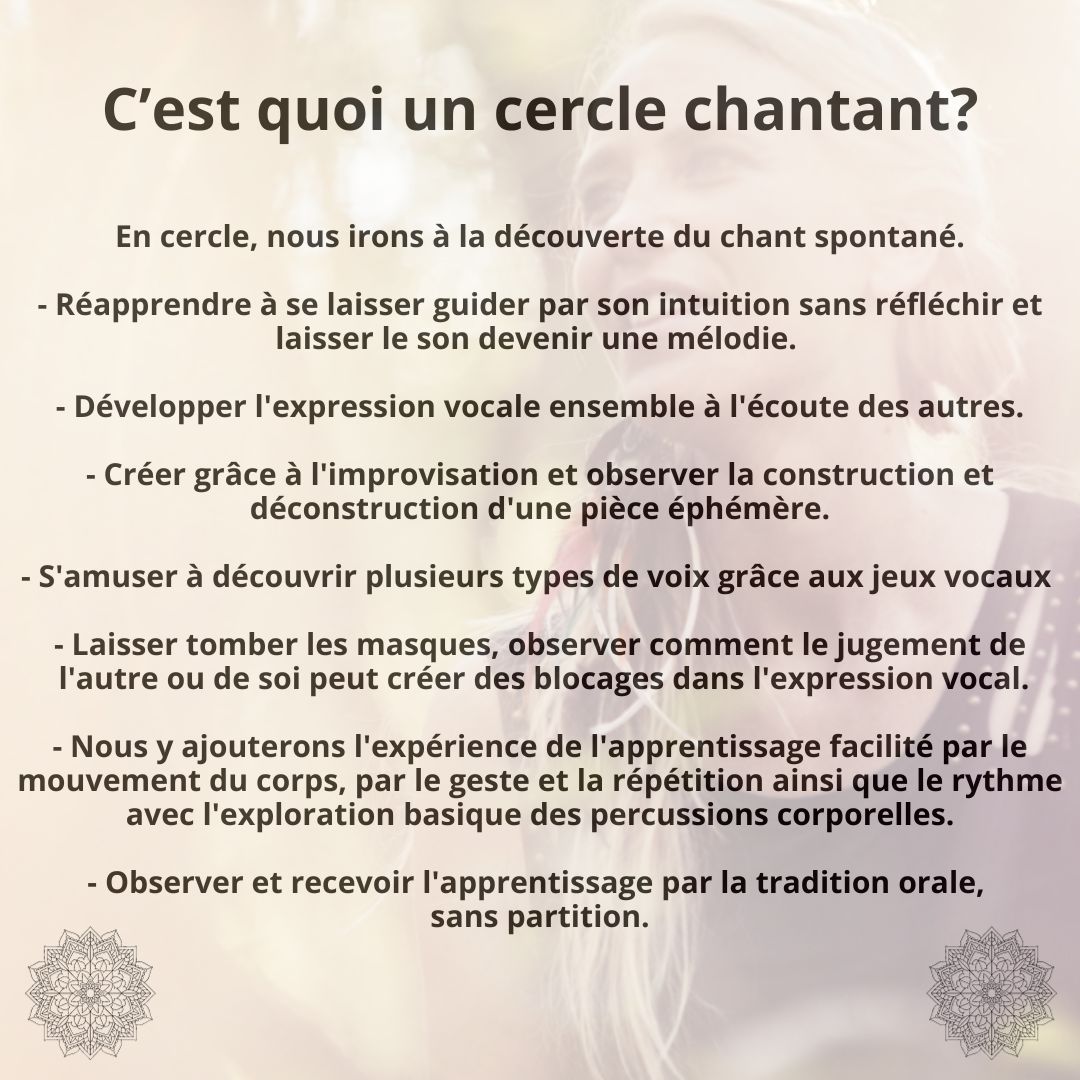 • En cercle, nous irons à la découverte du chant spontané.