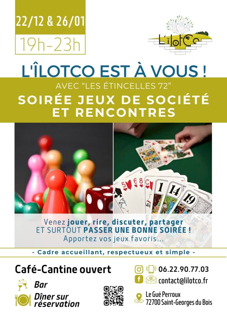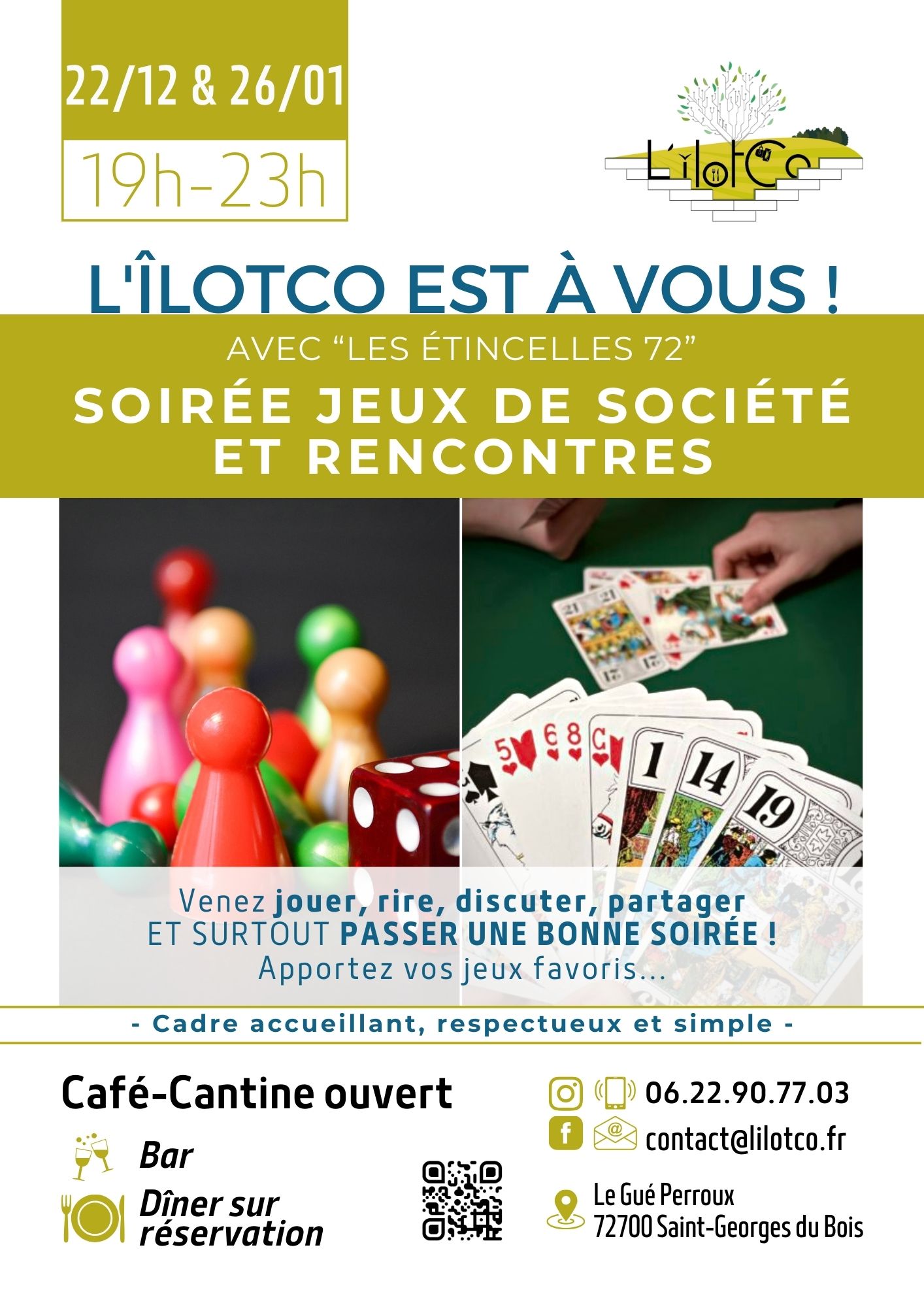 L’association Les Étincelles 72 vous convie à L’îlotco pour une soirée jeux de société !