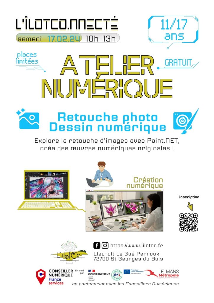 Le dernier RDV L’îlotCo.nnecté avait lieu samedi 17 février à L’îlotCo, avec un nouvel atelier gratuit pour les 11-17 ans, qui a permis à 7 jeunes de découvrir le dessin numérique, et la retouche photo !