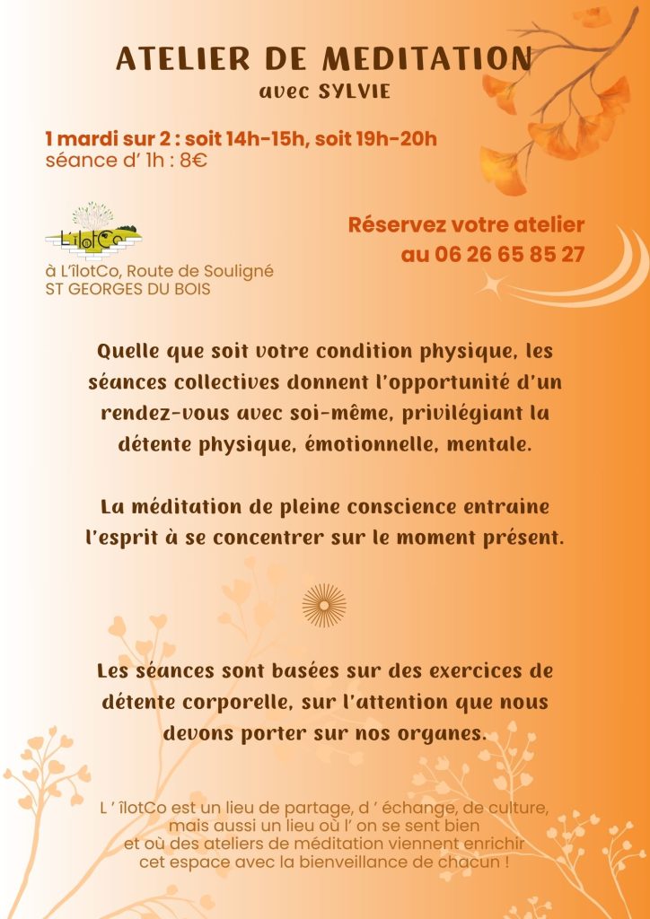 Une activité Méditation, à L’îlotCo, depuis le mardi 3 octobre 2023 !
