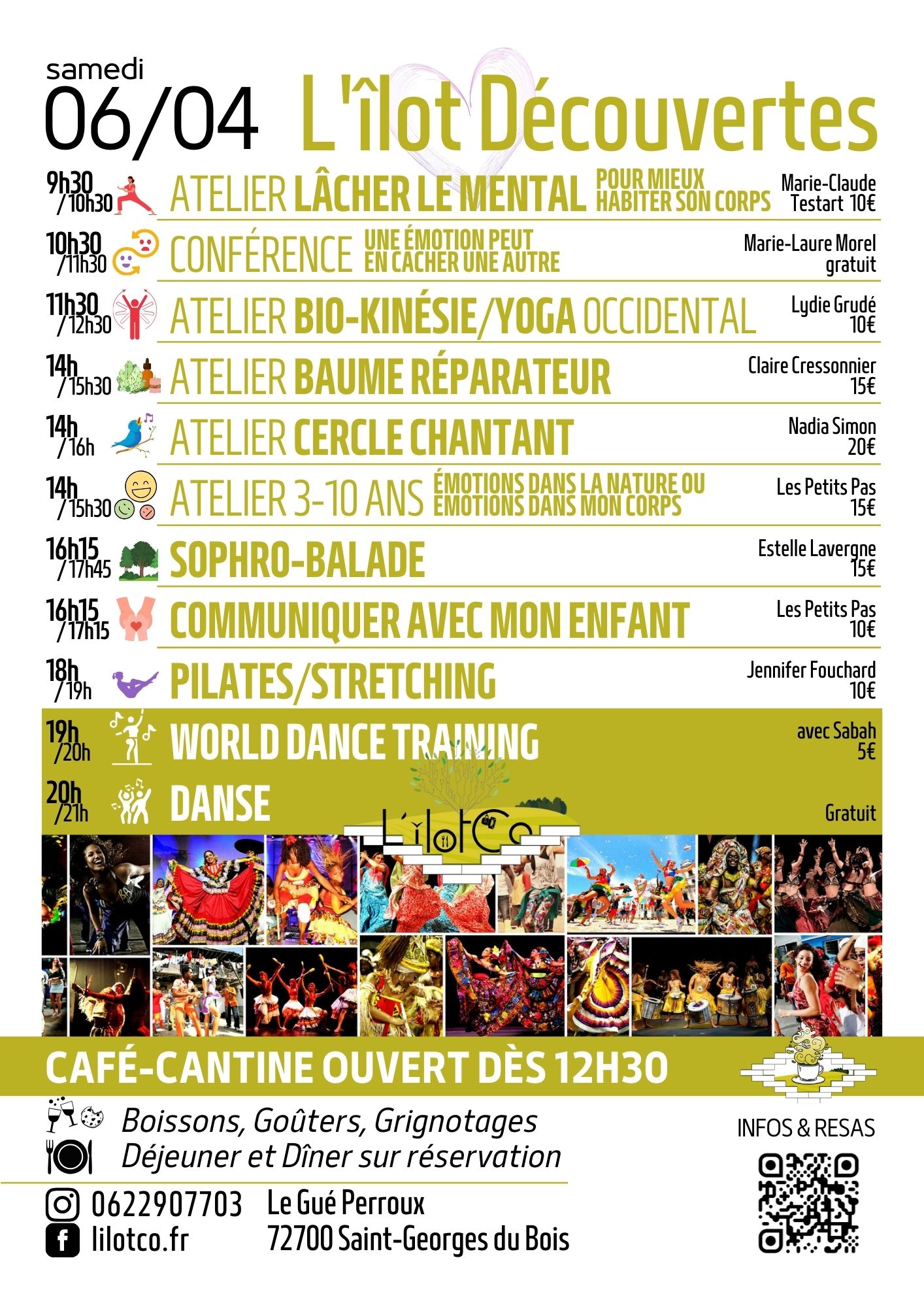 ou dès 13h30 avec bar, collations, goûters, grignotages…