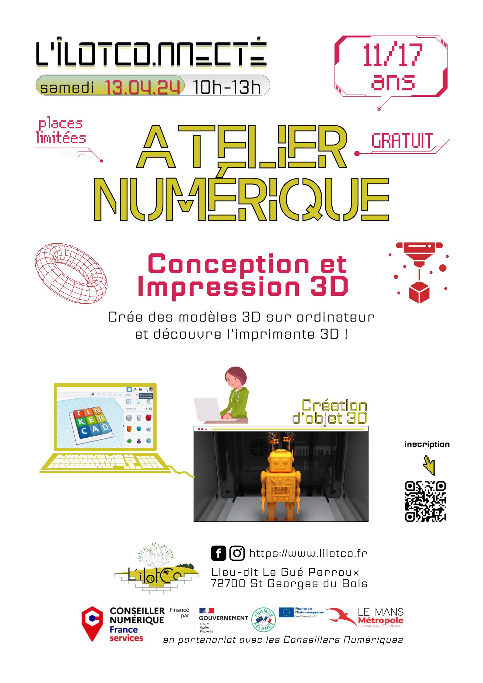 Vous apprendrez à concevoir des modèles en 3D, à les préparer pour l’impression et à utiliser une imprimante 3D pour matérialiser vos créations.