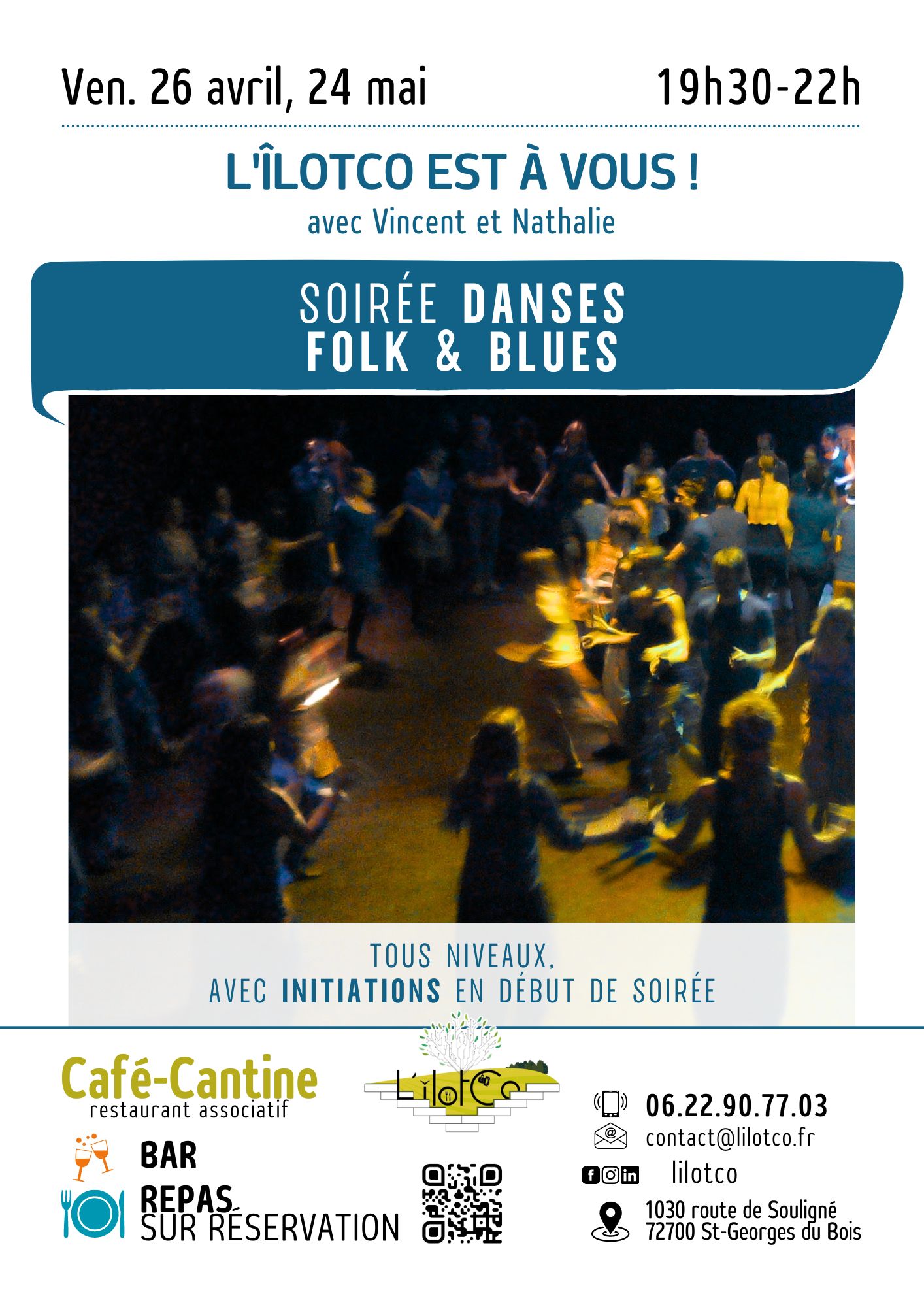 Vincent vous convie à L’îlotco pour une soirée Danses folk et blues, de 19h30 à 22h !