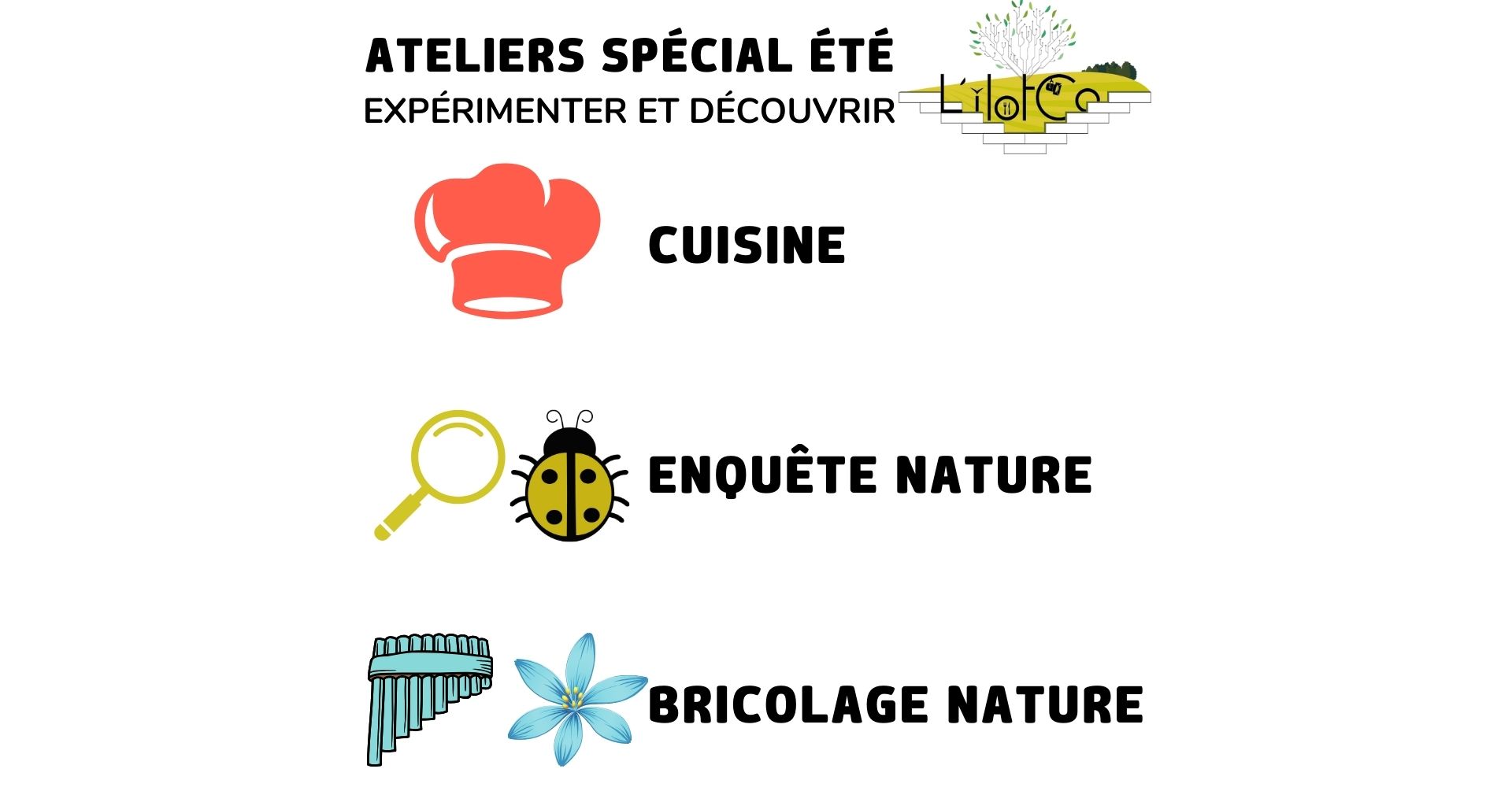 Pour juillet, L’îlotCo vous a concocté des ateliers pour les ados, pour les enfants, ou en binôme parent/enfant !