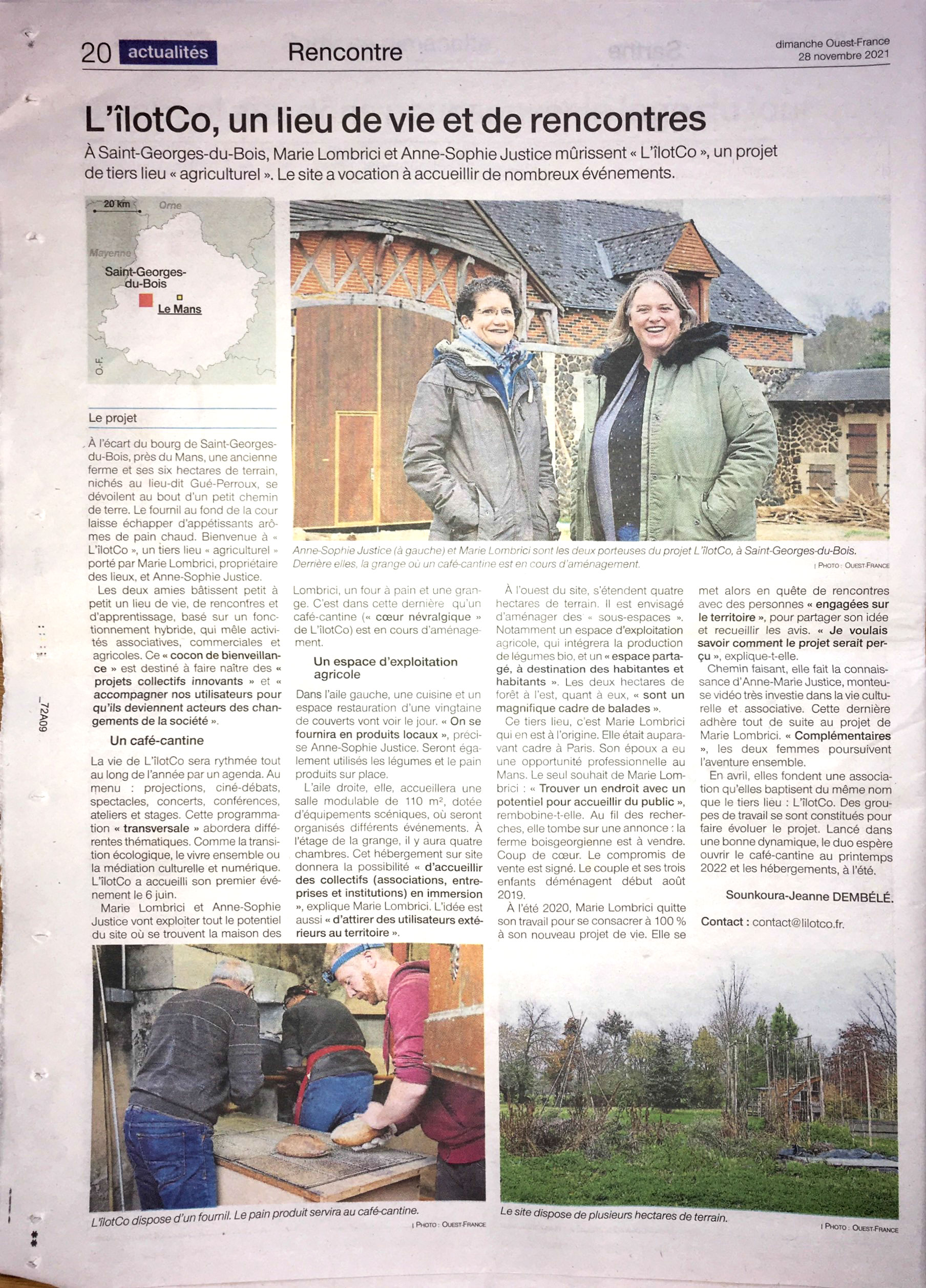Voir l’article - Ouest France – 28 novembre 2021 « L’îlotCo, un lieu de vie, de rencontres et d’apprentissage à Saint-Georges-du-Bois »