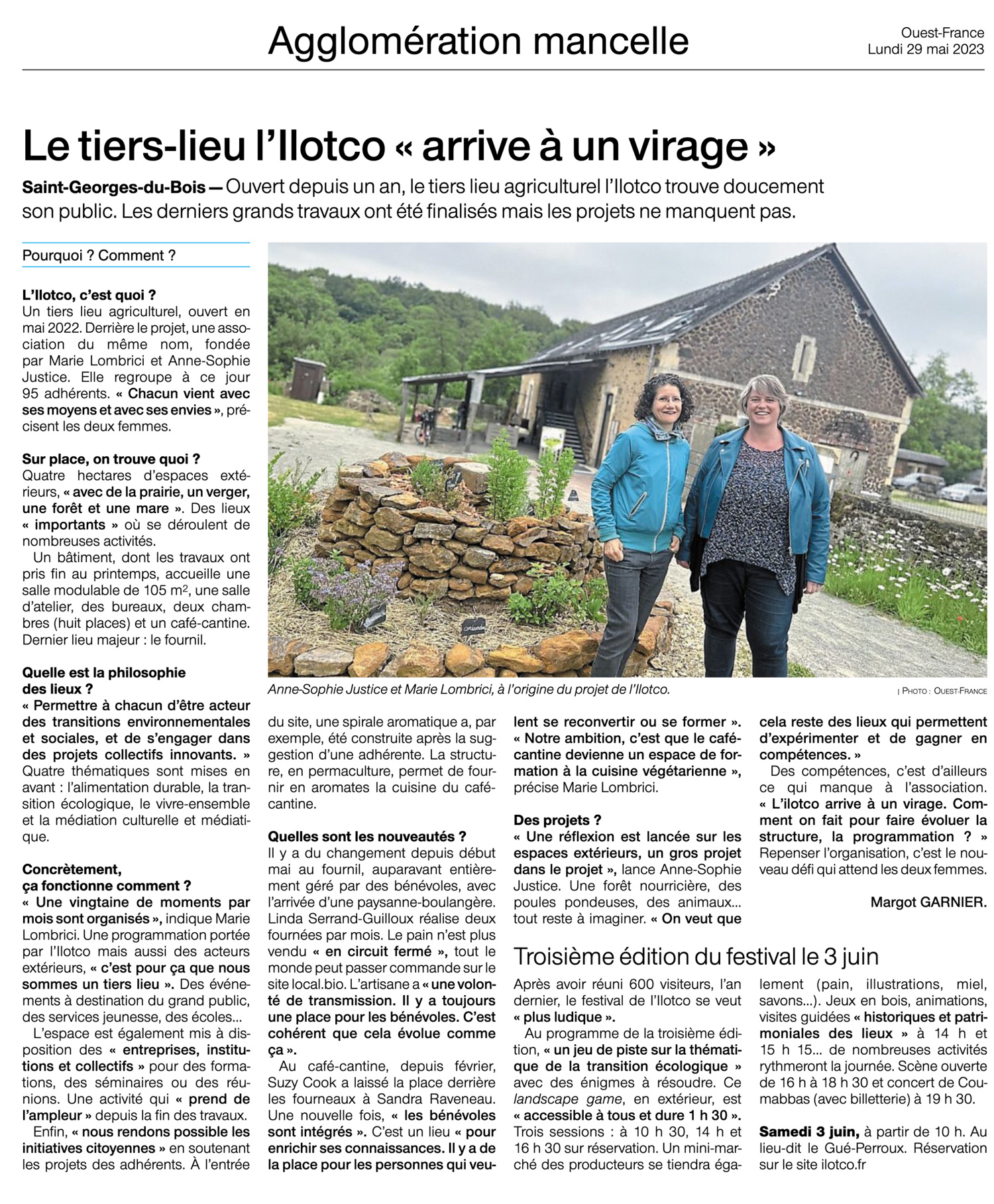 Voir l’article - Ouest-France – 29 mai 2023 « Un an après son ouverture, le tiers-lieu L’îlotco « arrive à un virage » »