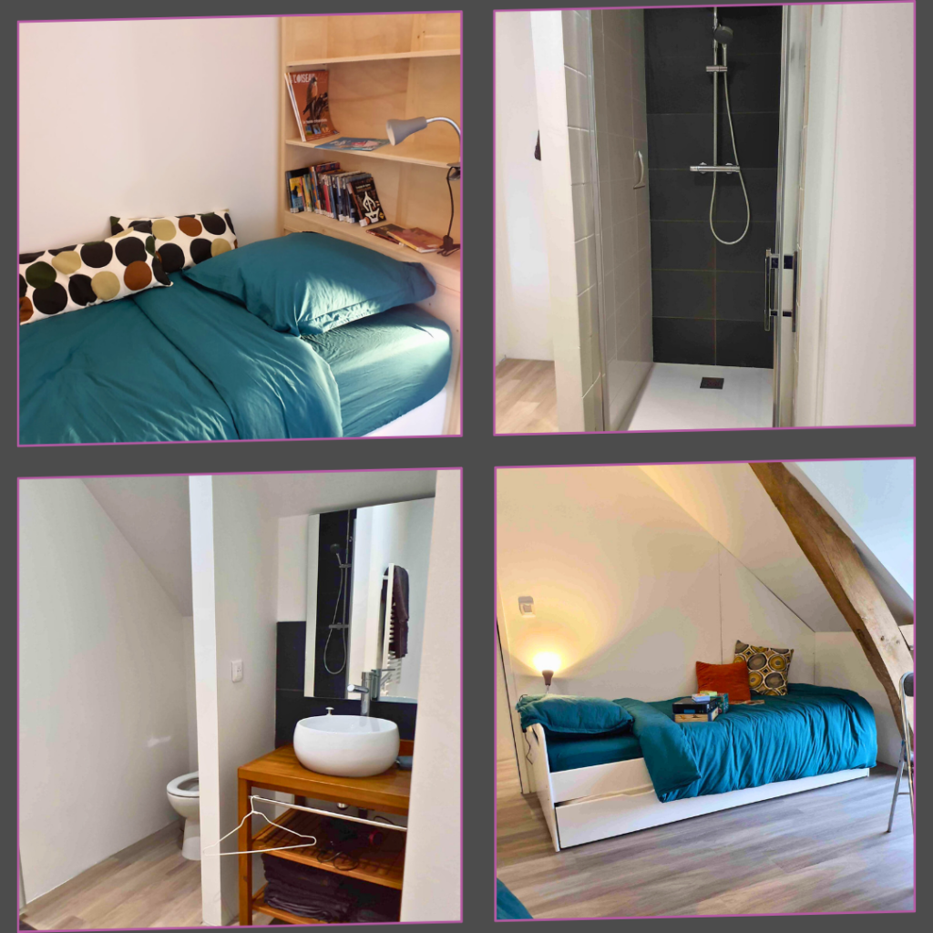 Les chambres sont (presque) identiques, l’une donne sur la cour, l’autre sur le jardin.